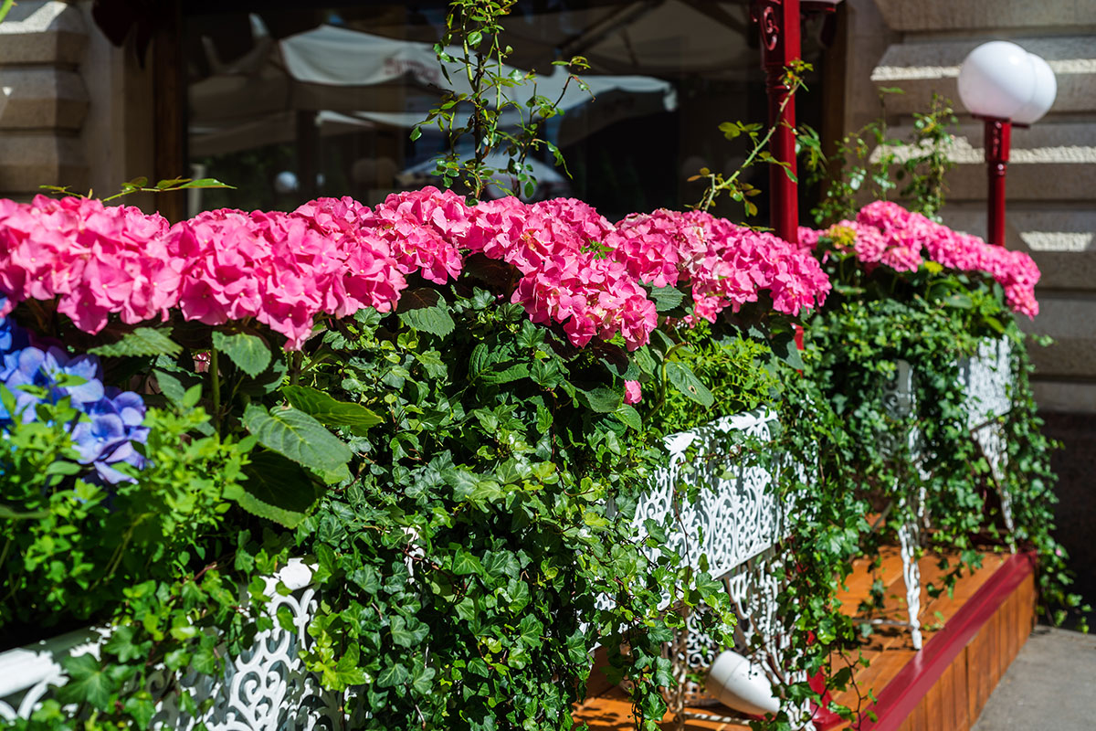 • Hortensia: necesita algo de sombra y riego frecuente.