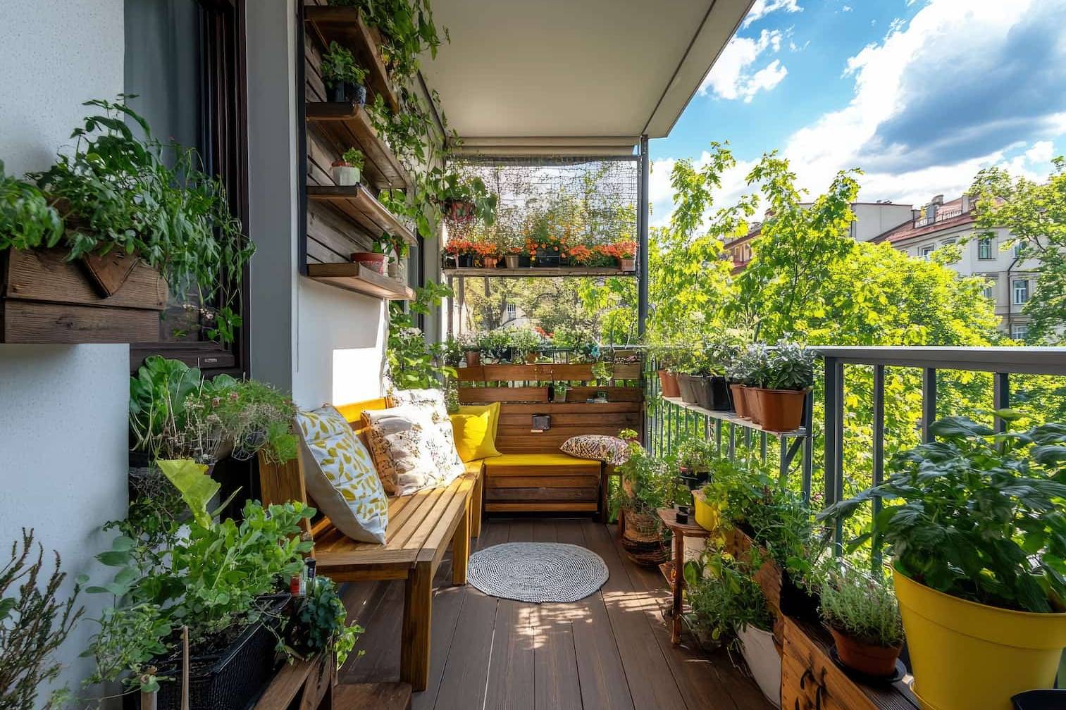 Un balcón lleno de vida: convierte cada rincón en un oasis con vegetación y madera natural. La conexión con la naturaleza empieza en casa.