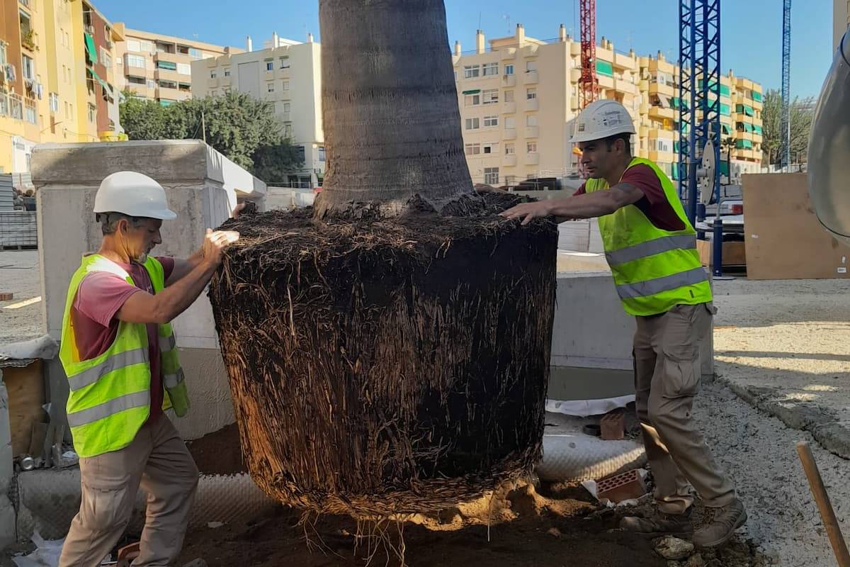 La empresa de jardinería con más de 30 años de trayectoria en la Costa del Sol ha realizado el trasplante antes del comienzo de las obras del futuro parking subterráneo.