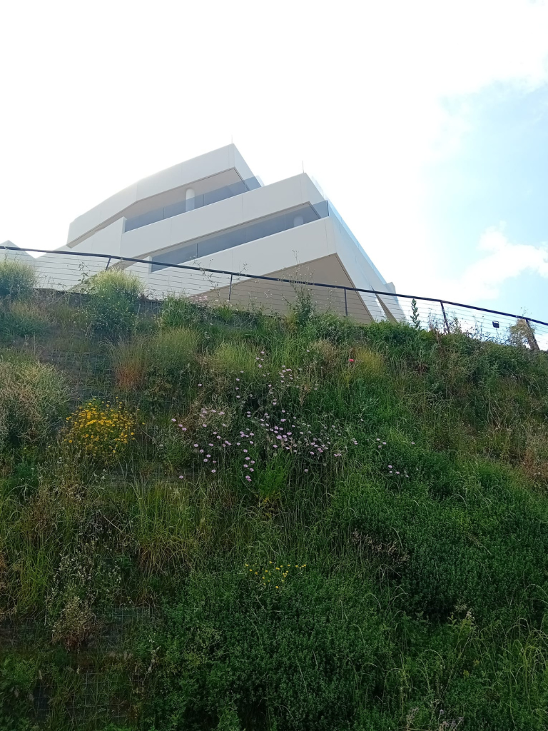 Selección de especies vegetales autóctonas: optamos por plantas resilientes, que se adapten perfectamente a las condiciones climáticas del entorno, garantizando una optimización del consumo de agua y un bajo mantenimiento.