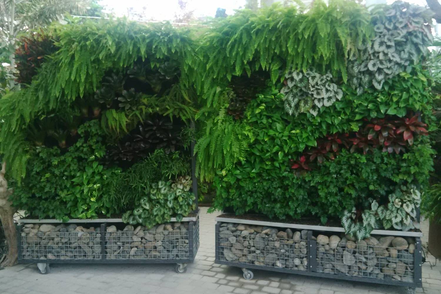 Agrojardín Landscaping aplica varias tecnologías en estas mamparas verdes higienizantes para crear áreas de protección saludables. Los empresarios de hostelería pueden usarlos para separar ambientes de una forma eficaz y decorativa.