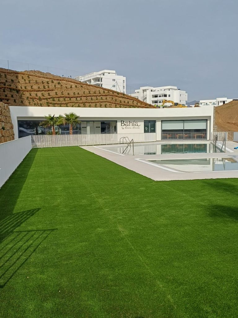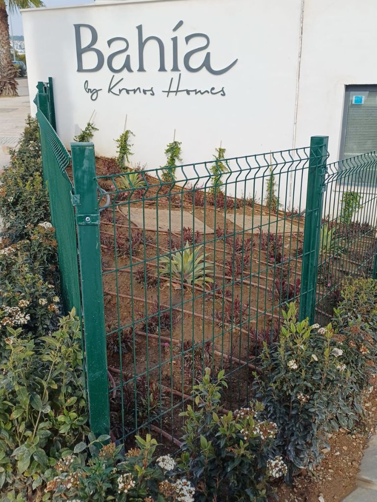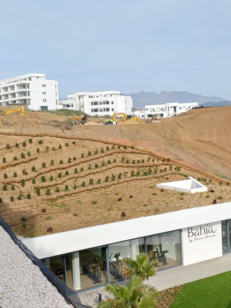 En la promoción Bahía, desarrollada por Kronos Homes en La Cala de Mijas, Agrojardín Landscaping está ejecutando las zonas verdes y distintas actuaciones relacionadas con el sistema de riego y la gestión del agua.