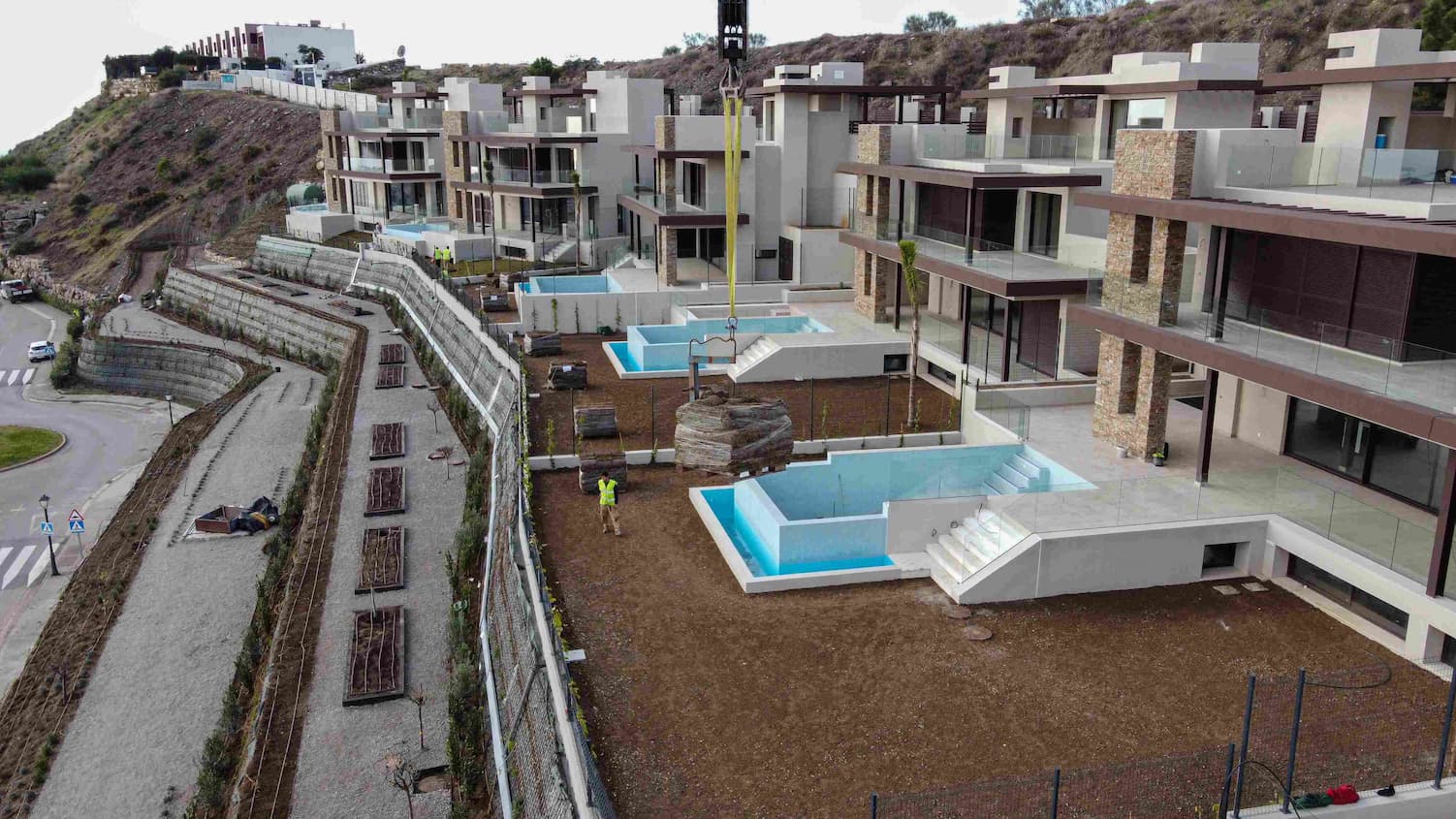 Los jardines de la promoción Be Lagom en Benahavís son marca Agrojardín