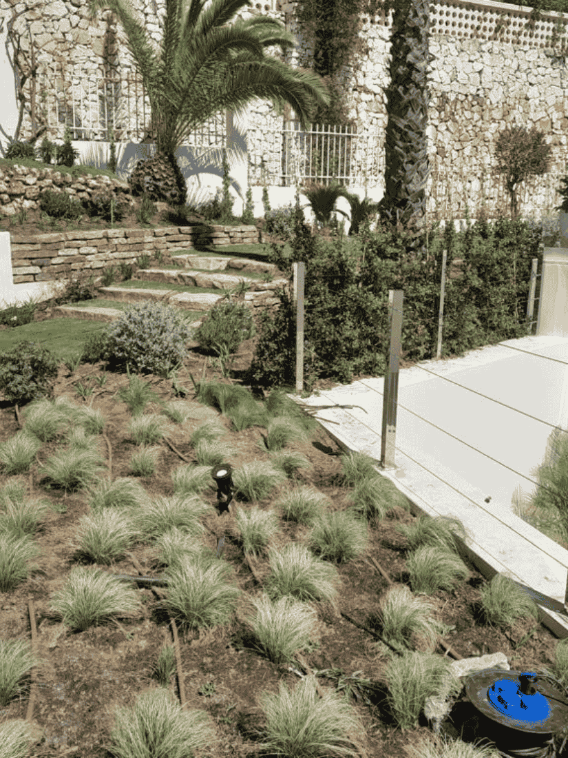 Agrojardín Landscaping también ofrece soluciones técnicas especiales para adaptarse a cualquier terreno. En esta ocasión, estamos trabajando en un chalé privado de la mano de la paisajista Isabel Pallarés. La propia orografía del terreno requiere de ciertas actuaciones y adecuaciones para salvar determinados obstáculos que, a su vez, busquen el embellecimiento de la parcela.